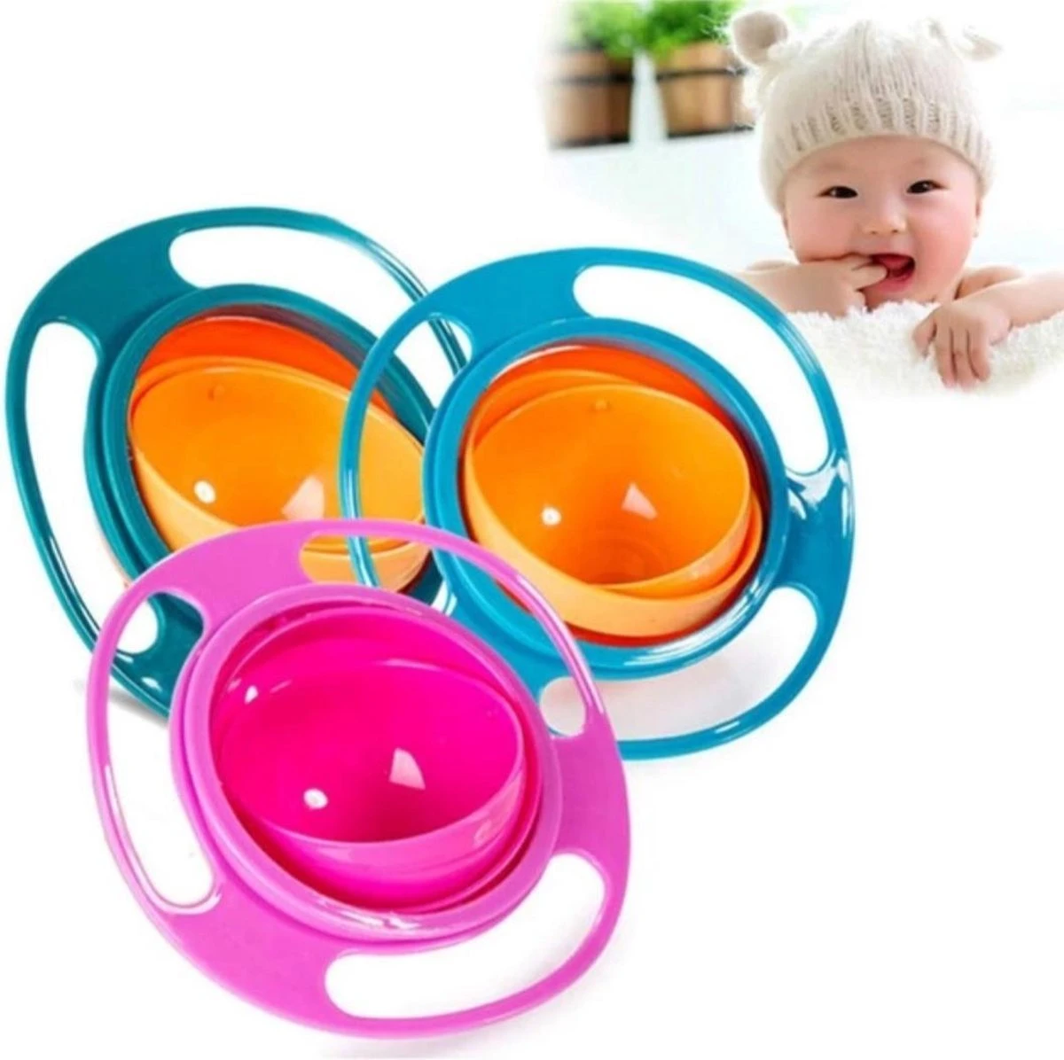 De Spill-Proof Babyvoeding kom is zo ontworpen dat de eten er niet uit valt hoe de kom ook staat. De kom heeft een speciale draai functie in dat die altijd recht blijft staan ook al draait u er mee.