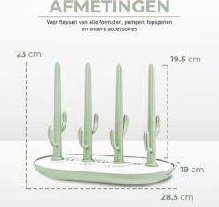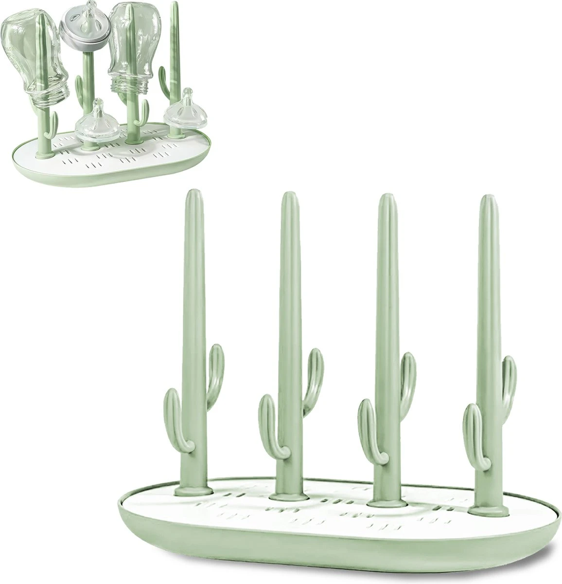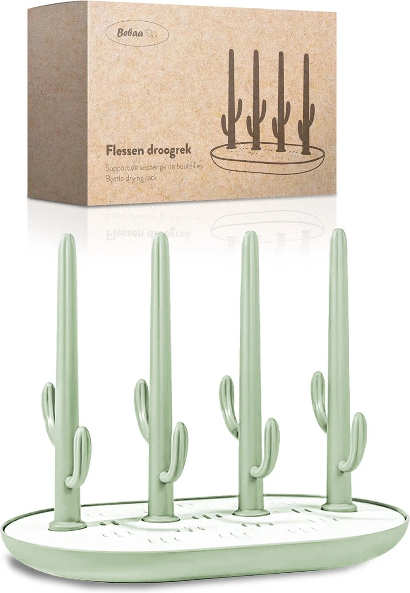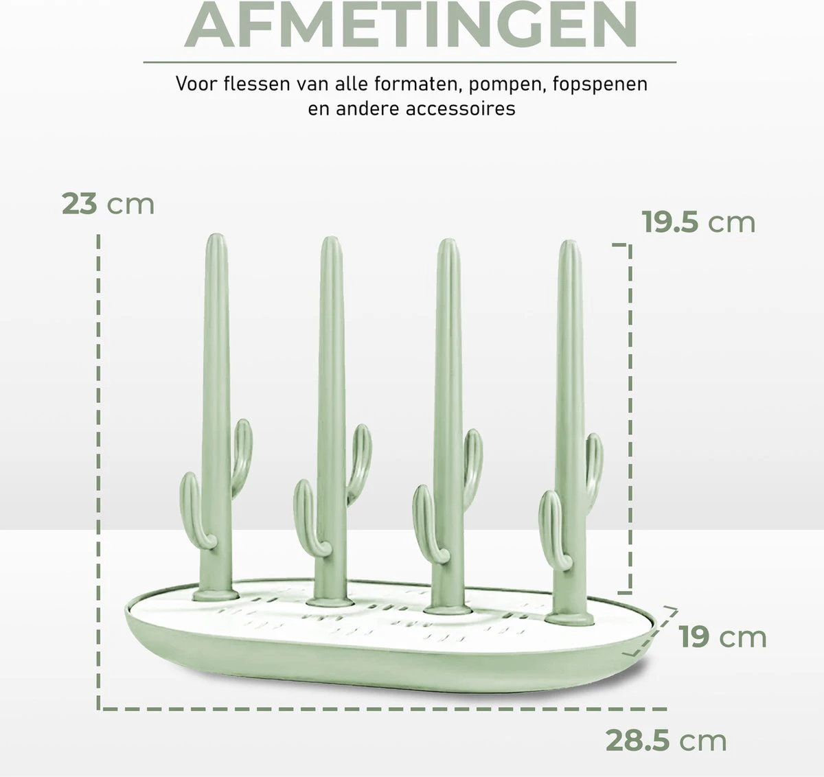 Het droogrek is niet alleen erg praktisch, maar ook nog eens zeer stijlvol. Zo heeft het droogrek de vorm van een cactus. Aan de verschillende stammen van de cactus kun je het flesje en de dop eenvoudig ophangen.