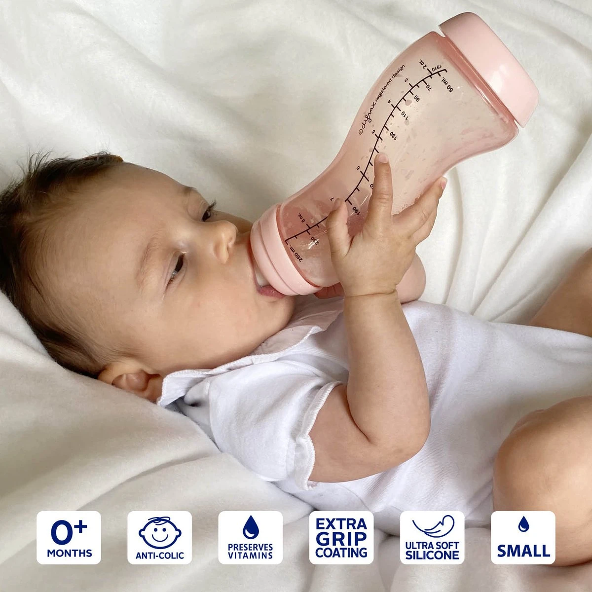 Difrax – S-Fles Duopack – Bruin/Roze – 250ml – 0+ maanden