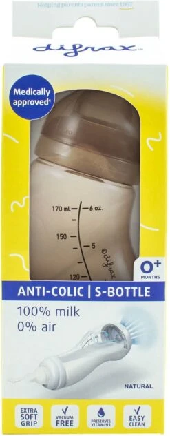 Difrax – S-Fles Natural – Babyfles Bruin- 0+ maanden – 170ml is de populairste babyfles voor baby, papa en mama. Het speciale anti-darmkrampjes ventiel en de S-vorm zorgen voor een constante stroom van flesvoeding. De Roze Anti-colic babyfles is vanaf de geboorte te gebruiken en ideaal in combinatie met borstvoeding.
