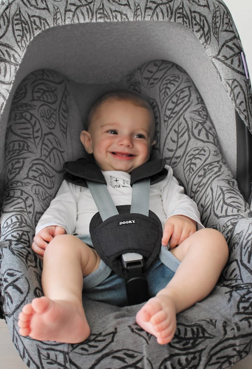 De Dooky gordelbeschermers zijn stijlvolle zachte kussentjes voor de gordels en het kruisstuk van de autostoel groep 0+, groep 1 maar ook voor de buggy. Perfect te combineren met de zwarte autostoelhoes 0+ van Dooky. Zo zit je kindje heerlijk comfortabel in de autostoel. De gordelbeschermers zijn zeer gemakkelijk aan te brengen door het klittenband.