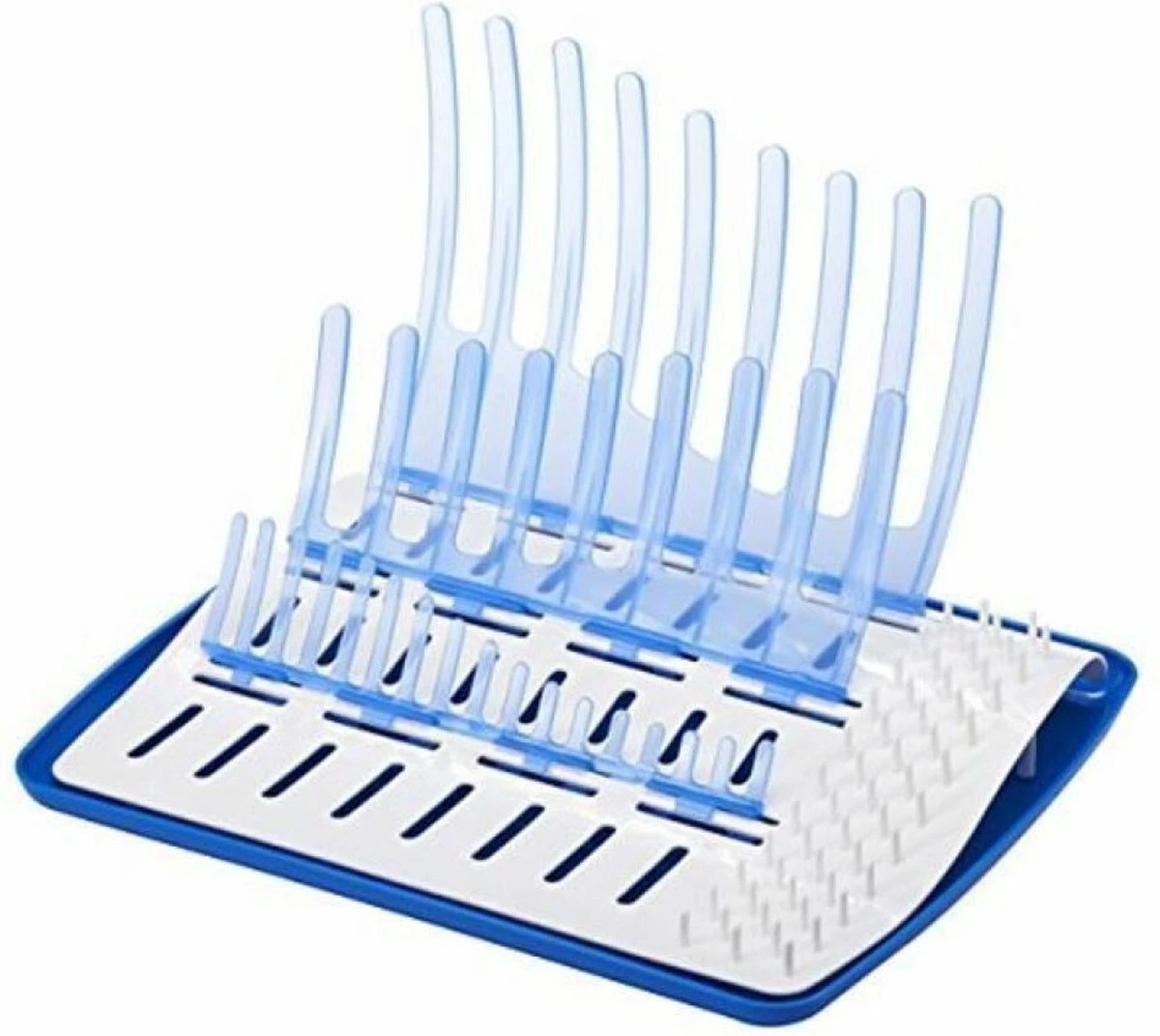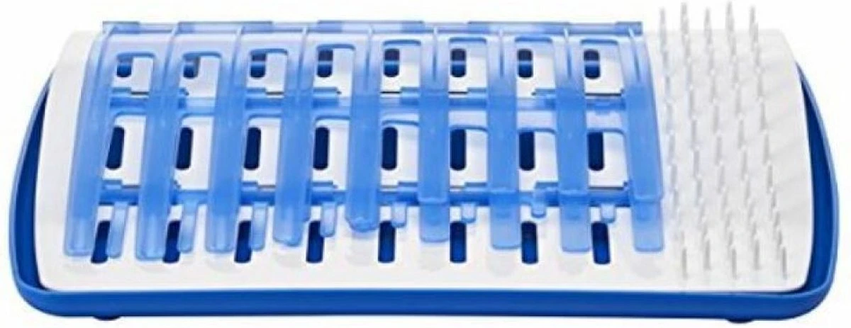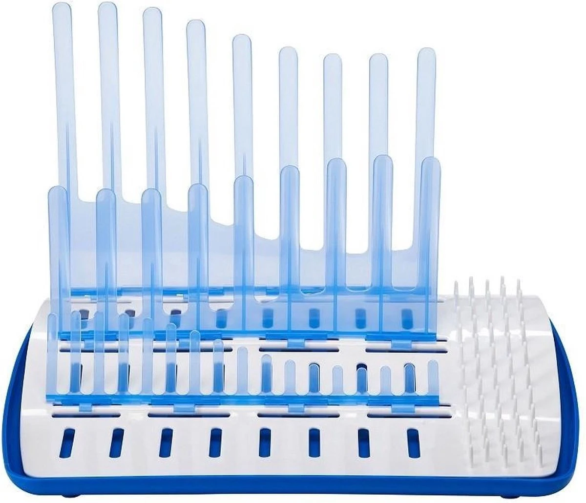 Een droogrek waarin je flessen, doppen en ventielsystemen kunt laten uitlekken en opdrogen.