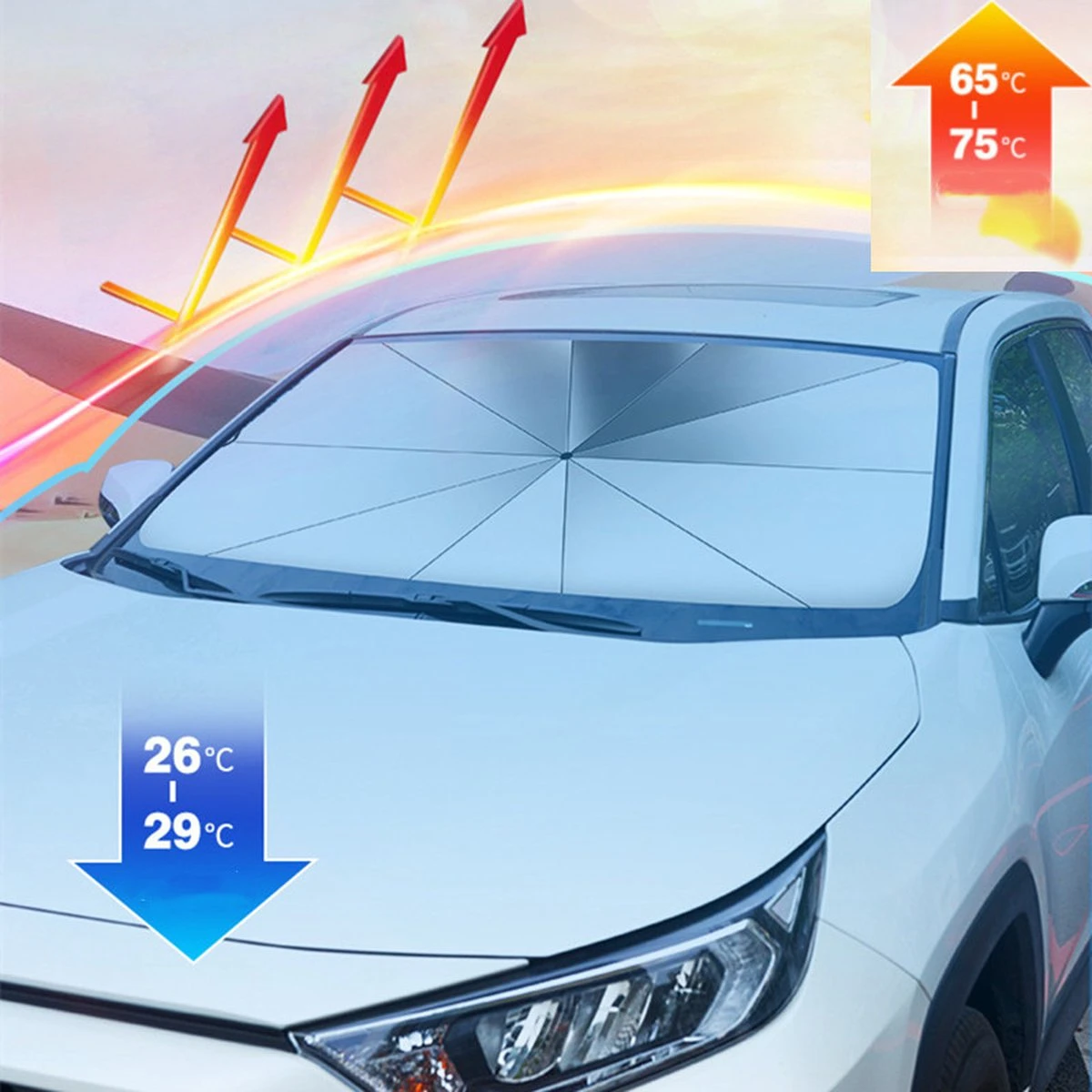 Het wordt ten zeerste aanbevolen om de voorruit van de auto te meten voordat u bestelt, om er zeker van te zijn dat deze paraplu in uw auto past.