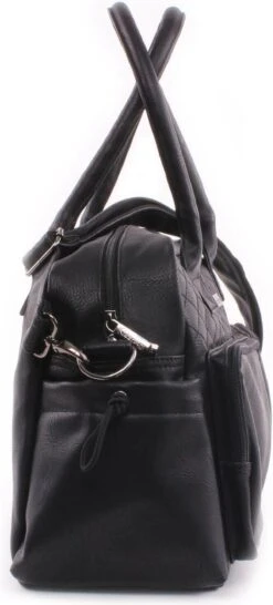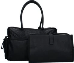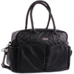 Deze verzorgingstas is een city chic model in leatherlook. Het model heeft stiksels in ruitjespatroon, wat de verzorgingstas een luxueuze uitstraling geeft. Naast de stijlvolle uitstraling is de verzorgingstas ook zeer praktisch met een ruim hoofdvak en diverse insteek en opbergvakjes. Hiermee is het een ware it-bag voor de fashionable mama’s.