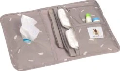 Functionele toepassingen zorgen voor een snelle en gemakkelijke luierwissel. Een compartiment voor natte doekjes met een praktische opening, verschillende zakken voor luiers en dergelijke, een zakje met ritssluiting, evenals een tape voor het bevestigen van een fopspeen, maken dit een praktisch accessoire. Een waterafstotende, zacht gevoerde verschoningsmat die past bij de tas, zorgt voor een optimale luierwissel voor de baby.