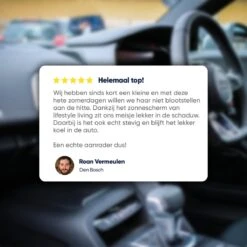 ✔ Geen vieze ramen – In tegenstelling tot veel andere zonneschermen maakt het zonnescherm van Lifestyle Living gebruik van statische energie. Dit betekend dat het zonnescherm vanzelf tegen de autoruit blijft kleven zonder zuignappen (wat vaak resulteert in vieze vlekken).