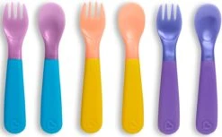 ColorReveal™ kinder bestek zorgt ervoor dat de kleintjes meer betrokken blijven aan de eettafel! Deze munchkin lepels en vorken zijn ergonomisch ontworpen om kleine handen te passen, en het beste van alles is dat ze een kleurrijke verrassing onthullen. Wanneer ze warm of koud voedsel aanraken, reageren ze met een leuke kleurverandering (verschillend voor elke temperatuur). Uw kind kan gemakkelijk herkennen wanneer het voedsel te warm is om te eten.