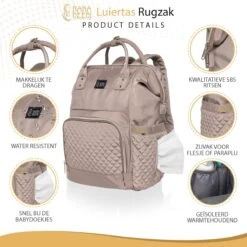 NanaBeebi Luiertas Rugzak Met Verschoonmatje – Beige Taupe – Inclusief Flessenwarmhouder – Kinderwagenhaken En Isoleervak