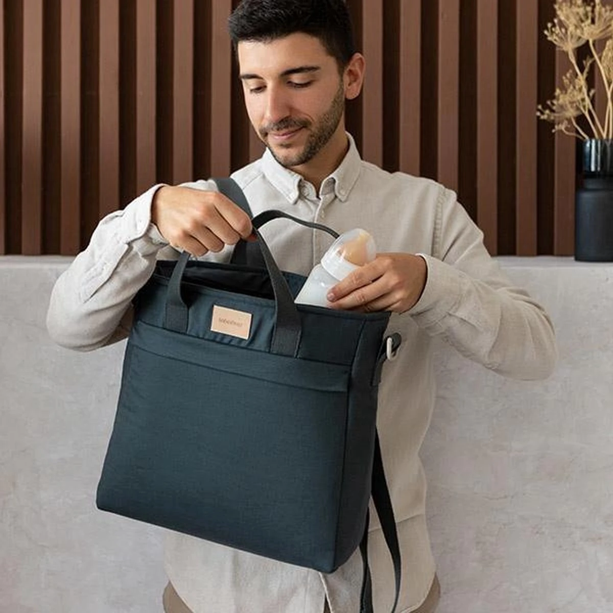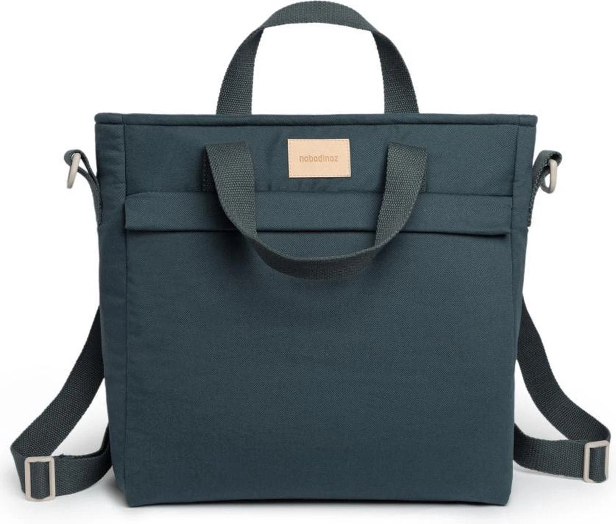Deze elegante luiertas rugzak Carbon Blue uit de Nobodinoz Baby on the Go collectie is super praktisch! Je kan deze verzorgingstas op 3 manieren dragen: in de hand, als rugzak en vastgemaakt aan de duwstang van kinderwagen met de verstelbare en verwijderbare klittenbandsluitingen. De luiertas heeft 1 groot compartiment met twee binnenzakken en ©©n grote buitenzak met ritssluiting. Zowel de buitenstof als de binnenvoering zijn waterdicht. Dankzij zijn strakke vormgeving en neutrale kleur past deze luiertas rugzak perfect bij elke stijl.