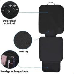 Deze beschermmat voor autostoeltjes garandeert bescherming van de bekleding en maakt de algehele reiniging gemakkelijker.