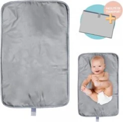 Een heerlijk compacte reis verschoningsmat om onderweg je baby op een schone ondergrond te kunnen verschonen. Waterafstotend en met een afmeting van 68,5 x 35,5 cm groot genoeg voor je baby maar klein genoeg om zo weer op te bergen, opvouwen en vastzetten met klittenbandsluiting. Verpakt in doorzichtige opbergtasje. Kleur grijs.