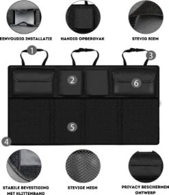 De premium auto-organizer van W&Z is een geweldig middel om georganiseerd de weg op te gaan. De perfecte afmetingen van 87×17 cm zorgt ervoor dat deze organizer uitermate geschikt is voor alle soorten voertuigen. Deze organizer voor de achterbank helpt je te profiteren van de ruimte boven de vloer. Op die manier kun je nog steeds je bagage en andere grote spullen op de vloer leggen. De organizer heeft veel vakken voor spullen die je niet in je koffer wilt stoppen.