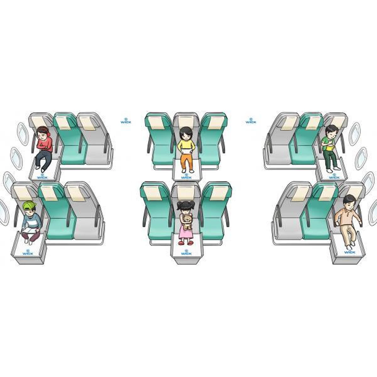 • Het gepatenteerde Wick Air vliegtuig bedje.